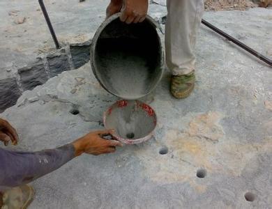(一)、施工前準(zhǔn)備:跟據(jù)當(dāng)?shù)貧鉁亍⑺巹囟?、拌水溫度、被破碎體溫度、是否與要求相符合;檢查藥劑包裝是否破損。操作前請確定已準(zhǔn)備好以下材料物品: 1、藥劑。2、潔凈水。3、水桶、拌和盆。4、捅棍。5、防護眼鏡。6、橡膠手套。7、備用潔凈水和毛巾。